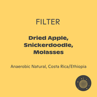 Keep the holiday cheer brewing with this festive blend, combining an anaerobic natural Costa Rican Esperanza and an expressive Ethiopian Landrace. Blended for maximum fruity sparkle and nostalgic spice, this coffee consistently delivers dried-apple sweetness, rich molasses depth, and warm snickerdoodle vibes, making it perfect for all your cozy holiday breakfasts